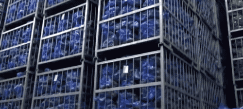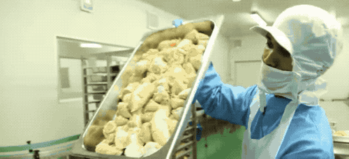 简单来说就是先把榴莲果肉送入一个零下 45℃ 的极速冷冻库,把果肉先冻成一块块的固体...接着送入零下 20℃ 的冷冻仓库,下图这满满当当的榴莲肉,都是对我妈来说贵重且可口的财富了...