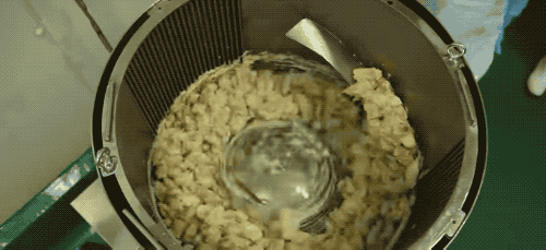 果泥和果肉就分别从机器的两端出来了,看起来是有些...