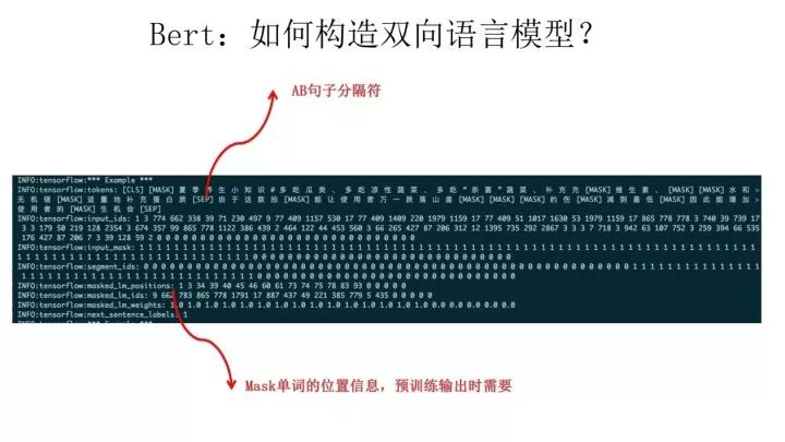 至于Bert在预训练的输出部分如何组织,可以参考上图的注释。