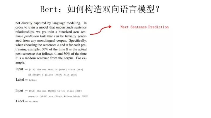 至于说“Next Sentence Prediction”,指的是做语言模型预训练的时候,分两种情况选择两个句子,一种是选择语料中真正顺序相连的两个句子;另外一种是第二个句子从语料库中抛色子,随机选择一个拼到第一个句子后面。我们要求模型除了做上述的Masked语言模型任务外,附带再做个句子关系预测,判断第二个句子是不是真的是第一个句子的后续句子。之所以这么做,是考虑到很多NLP任务是句子关系判断任务,单词预测粒度的训练到不了句子关系这个层级,增加这个任务有助于下游句子关系判断任务。所以可以看到,它的预训练是个多任务过程。这也是Bert的一个创新。