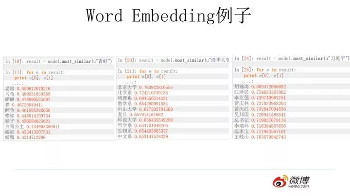 使用Word2Vec或者Glove,通过做语言模型任务,就可以获得每个单词的Word Embedding,那么这种方法的效果如何呢?上图给了网上找的几个例子,可以看出有些例子效果还是很不错的,一个单词表达成Word Embedding后,很容易找出语义相近的其它词汇。