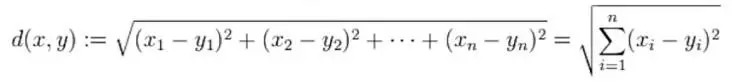 然后是目标函数。卷积神经网络中最多的回归问题,用的都是欧式(Euclidean)距离,算法为:。我们一般采用最右边的公式,该公式为求和公式,从 1 开始取到 n,对两个数之间的差值进行计算。