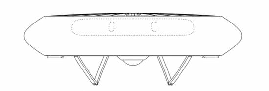 图3是该无人机的侧视图,详细的展示了可以改变飞行角度的“联合操纵器”。“联合操纵器”包括陀螺仪传感器,运动传感器,振动系统,加速器在不在其中还不得知。同时,这款无人机可能还具备语音识别功能和基于Wi-Fi的定位系统。