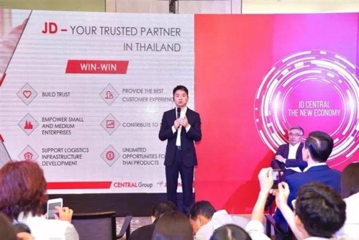 11月2日,京东集团和尚泰集团共同成立的合资公司正式启动,双方宣布将面向泰国和整个东南亚消费者推出一个全新的线上零售平台。这一平台将会使用JD Central的品牌进行运营,注册网址则为JD.co.th。刘强东表示,借助这一平台,依托泰国的资源和区位优势,覆盖其它东南亚大陆国家!