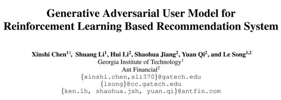 论文:Generative Adversarial User Model for Reinforcement Learning Based Recommendation System