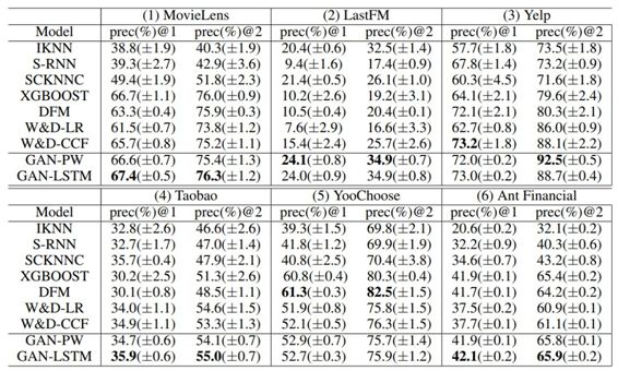 下面展示的是具有位置权重(GAN-PW)和 LSTM(GAN-LSTM)的 GAN 用户模型的预测准确率,表 1 结果表明 GAN 模型的性能显著优于基线。此外,GAN-PW 的性能几乎和 GAN-LSTM 一样,但训练效率更高。因此后续实验使用的是 GAN-PW(后面统称 GAN)。