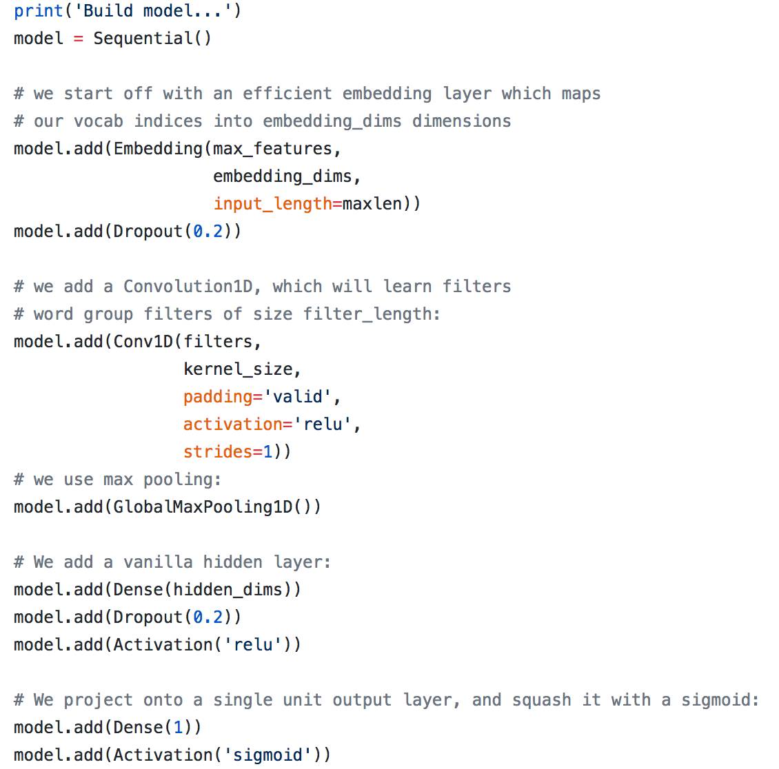 完整代码:https://github.com/fchollet/keras/blob/master/examples/imdb_cnn.py