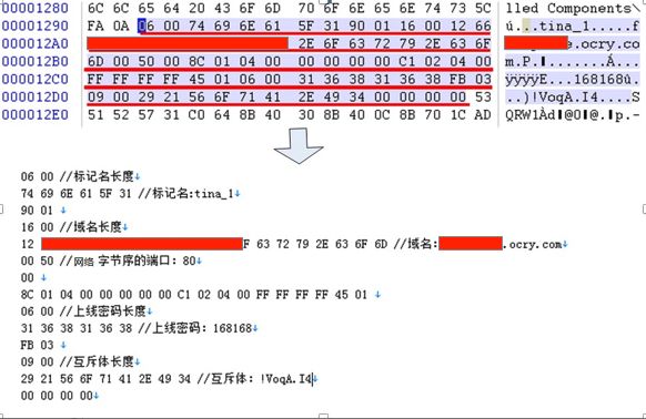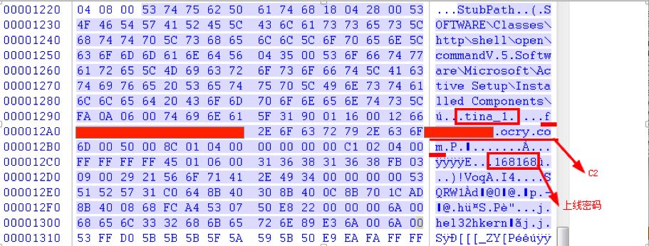 通过分析测试Poison Ivy木马生成的shellcode格式与该攻击载荷中使用的shellcode格式比较,得到每个配置字段在shellcode中的位置和含义。