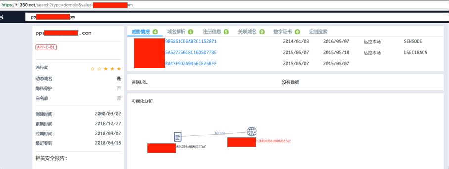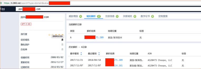 2.通过进一步查询IP历史映射域名,发现域名pps.*****usic.com对应内部发现的APT-C-01组织历史使用的域名。