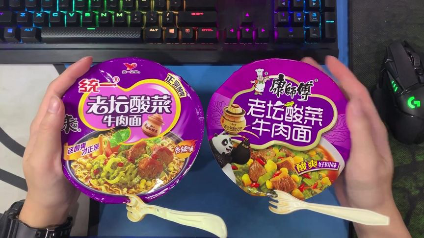 康师傅和统一老坛酸菜面对比图