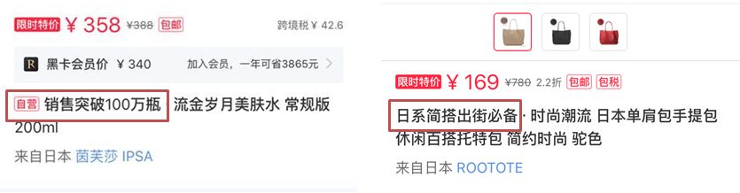反观,右边电商平台的商品标题文案就让人提不起兴趣了。