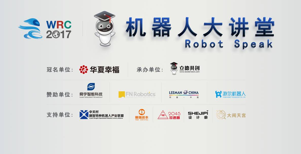 本次机器人大讲堂直播间的成功举办,感谢华夏幸福冠名支持,感谢舜宇智能科技、中瑞福宁、利曼中国和游尔机器人赞助支持,感谢中关村融智特种机器人产业联盟、雅瑞资本、2045加速器、设计癖、大闹天宫的支持。
