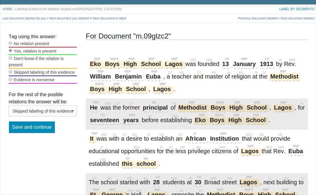 真正应用中,应该还要加入一个用户自己加入标注的交互方式,比如用户可以高亮一个词然后选择是“公司”,或者链接两个实体选择他们的关系等等。
