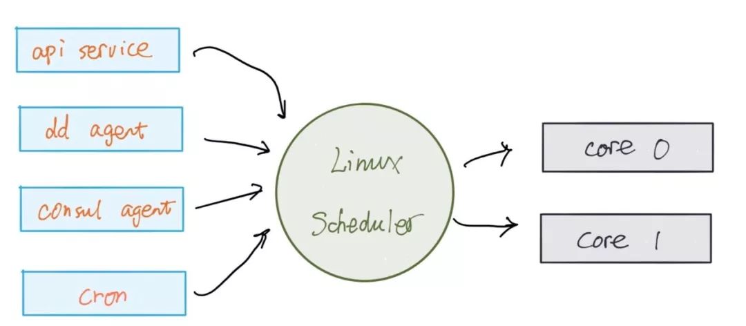 我们举个例子 —— 拿大家最耳熟能详的 linux CPU scheduler(以下简称 linux scheduler)说事 —— 就是把一系列 process (workload) 映射到一个个 CPU core: