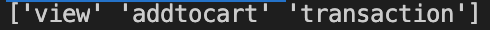 从上图可知,类型有三种,分别是:view、addtocart、transaction。
