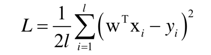假设有l个训练样本,特征向量为xi,标签值为yi,这里使用均方误差(MSE),线性回归训练时优化的目标为: