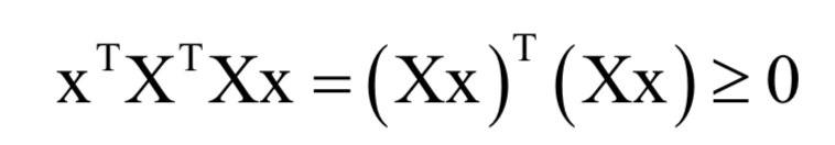 其中X是所有样本的特征向量按照列构成的矩阵。对于任意不为0的向量x,有: