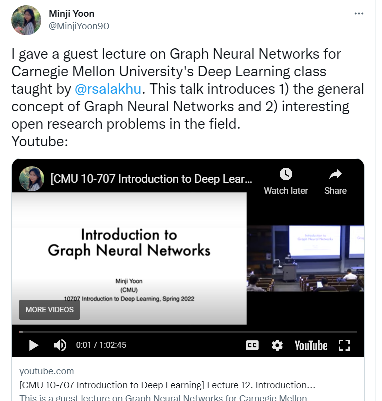 后台回复“GNN112” 就可以获取《GNN在2022研究进展?CMU-Minji112页PPT《图神经网络导论》,阐述GNN基本概念原理与研究进展,附ppt与视频》专知下载链接