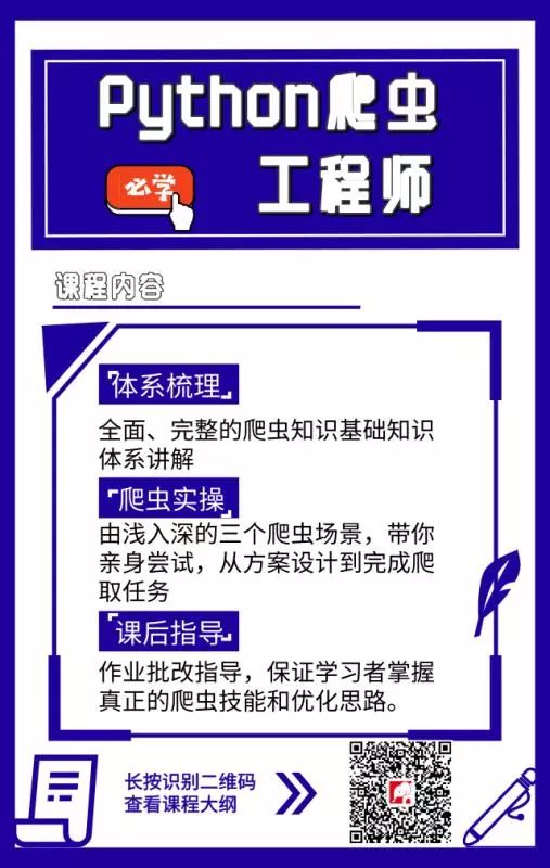 万事俱备,只欠数据,怎么办,赶紧学一下爬虫知识吧,我一直推荐入门这行的同学从爬虫学起,不是让你以后做一个爬虫工程师,而是希望你可以从一线触摸数据,有数据sense,数据的重要性在未来只会越来越大。当然学习的方法有很多种,可以自学,可以跟学,可以买书,可以上课,最重要的是实践。所以这个时候,可以一边学习一边针对豆瓣的或者其他夸夸小组做定向爬虫,不过豆瓣的防爬措施也很厉害,稍不注意,你的ip就会被封了。当然,做爬虫就是一个斗智斗勇的过程,如果你需要系统的学习爬虫知识,这里推荐一门课程:Python爬虫工程师