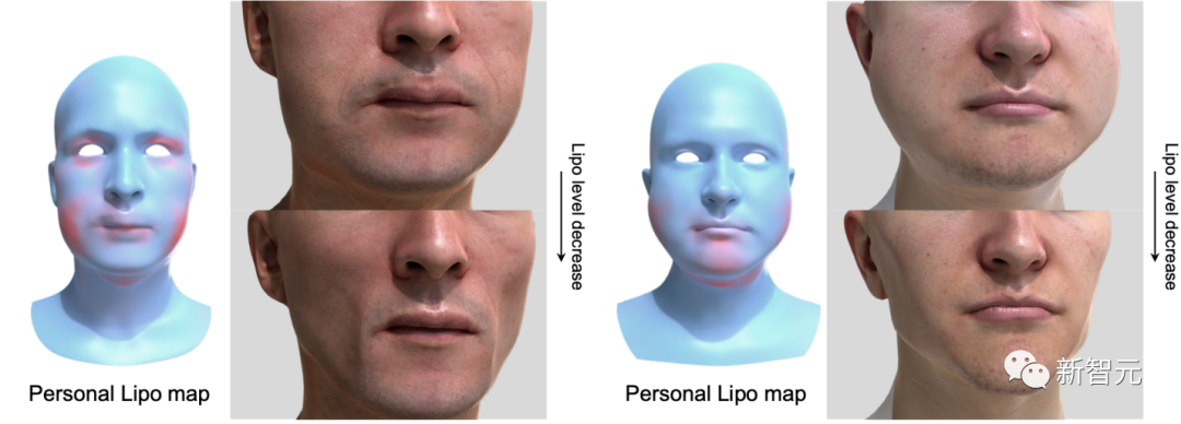 SCULPTOR也能构建同一个人不同胖瘦时期的面部脂肪分布。