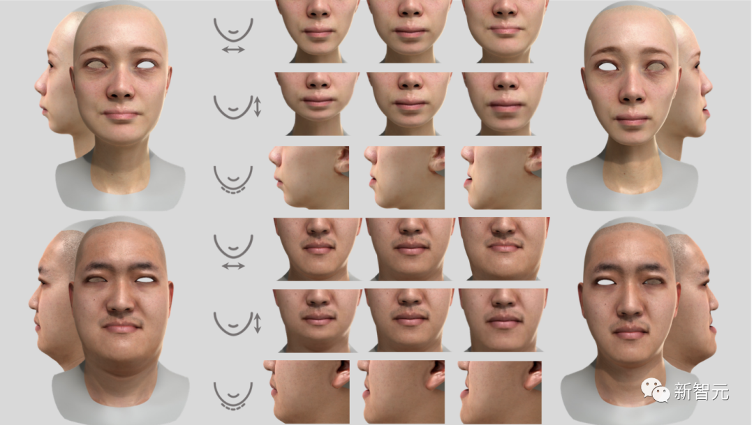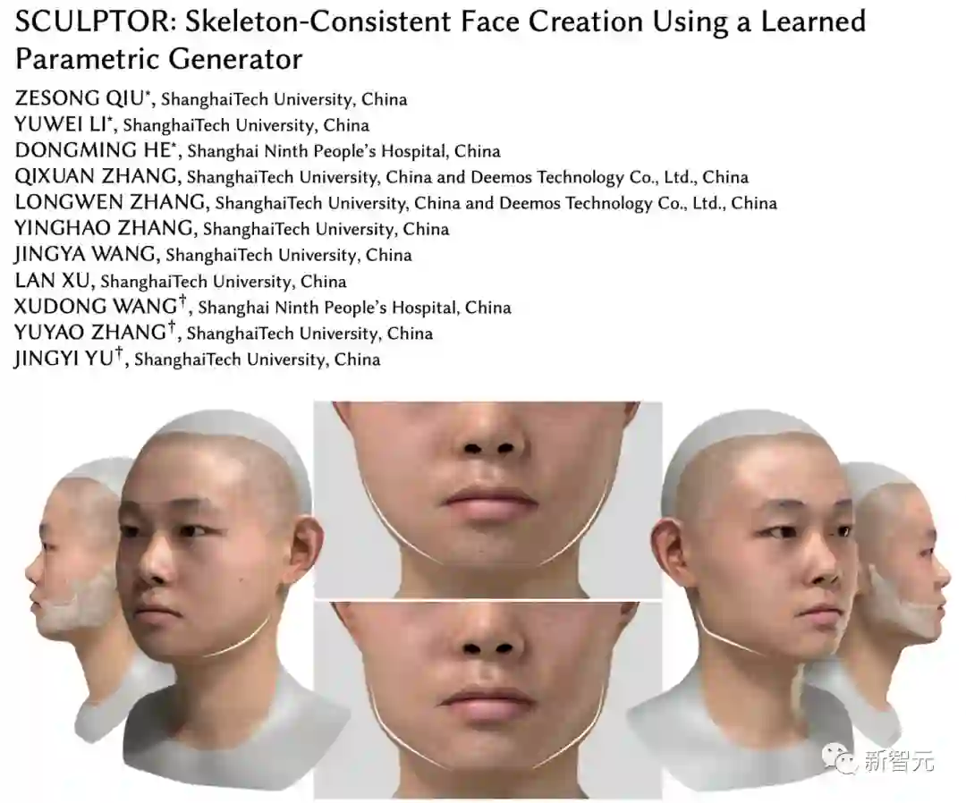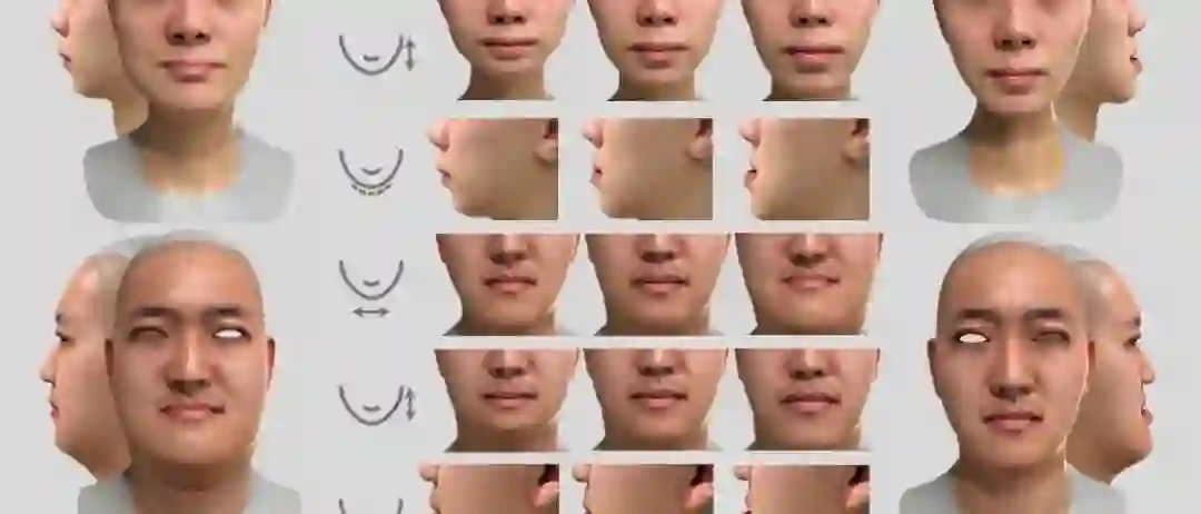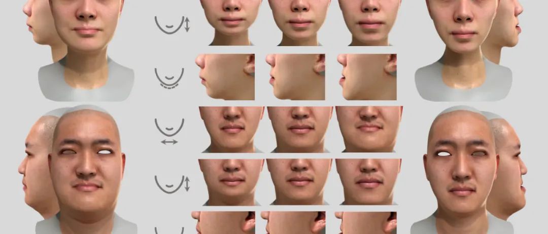 针对这一问题,上海科技大学、上海市第九人民医院与数字人底层技术公司影眸科技合力构建了一个同时对脸部外表面与内部头骨建模的系统,构建出符合解剖学规则的参数化(Parametric)人脸生成模型SCULPTOR,该模型可以为角色设计出高颧骨、长下巴等脸部特征。