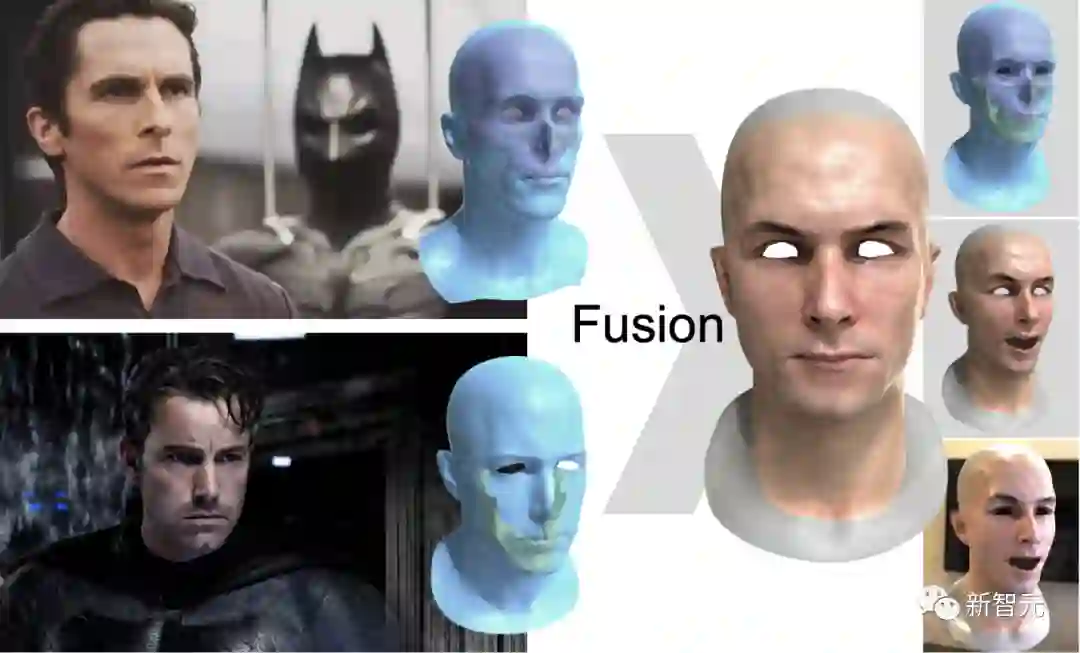 给定贝尔的下颌与阿弗莱克的上颌信息,SCULPTOR便重新生成了一个全新的、同时拥有两者的特征的「蝙蝠侠」人物 。