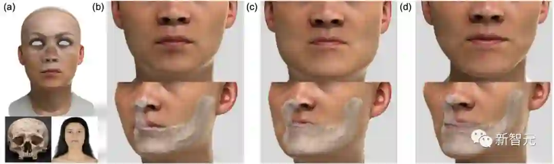 考古发掘很难同时找到头骨样本的上颌骨与下颌骨,而SCULPTOR模型能够根据已有的残缺样本推测头骨的可能缺失部分并且根据Trait子空间给出不同特征的脸型,从而帮助考古学复原人类头部骨骼。