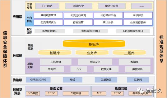 系统将分散的公共交通行业数据清洗、转换,分类存储,形成基础数据库、业务数据库、主题数据库和指标数据库,为系统提供数据支撑,同时实现与其他领域相关信息系统的数据交换与共享。基于对公交行业数据的挖掘和分析,提供公交运行监测、出行特征分析、考核评价、公交线网优化、行业监管、统计分析、公交出行服务等功能。