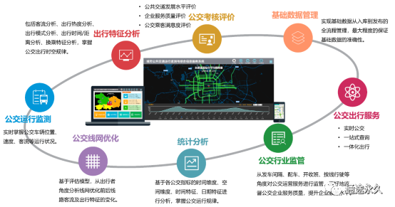 通过对地面公交卫星定位数据、一卡通刷卡数据、运营调度数据、轨道交通 AFC 刷卡数据等公共交通动态运营数据的全接入,建立城市公共交通运行监测体系,实现重点公交通道动态运行监测全覆盖,为提升公共交通行业精细化管理水平与服务管理效率提供支撑。