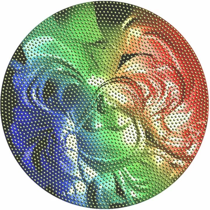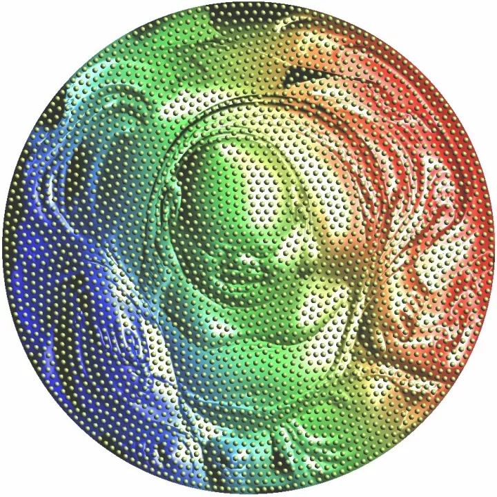 。我们的目的是做一个生成器,生成在曲面上的均匀分布。这里,子流形的几何比较复杂,我们先用几何中的Ricci流【5】的方法计算编码映射,将曲面映入到特征空间上, 映射将曲面的面元映到隐平面上面, 诱导了平面上的测度由曲面的共形因子来描述,如图10左帧所示。然后,我们计算隐空间到自身的最优传输映射,将均匀分布映射到由曲面共形因子定义的概率测度(即曲面上的面元),这样就得到从曲面到隐平面的保面元映射,得到图10右帧所示。