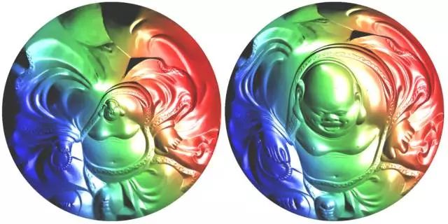图10. 几何方法构造的编码映射:左侧是保角变换,右侧是保面积映射,两者之间相差一个最优传输映射。