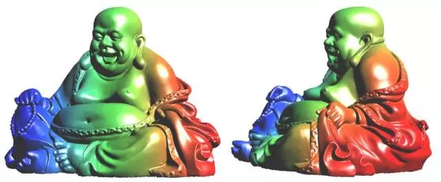 解码映射 我们设计的第二个实验更为复杂。我们将三维欧氏空间视为图像空间,弥勒佛曲面作为子流形