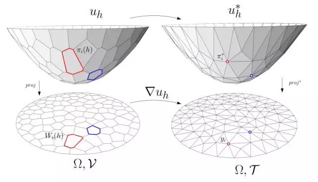 凸几何中的Alexandrov定理和最优传输理论中的Brenier定理本质是一致的,如图5所示,带测度的源区域为,目标为带狄拉克测度的离散点集