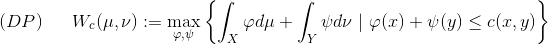 Kantorovich 对偶问题 Kantorovich证明了蒙日问题解的存在性唯一性,并且发明了线性规划(Linear Programming),为此于1975年获得了诺贝尔经济奖。由线性规划的对偶性,Kantorovich给出了Wasserstein距离的对偶方法: