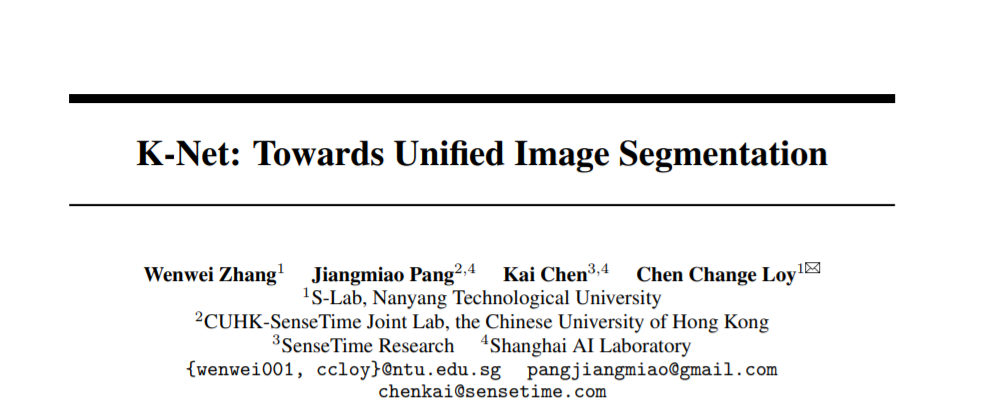 我们提出 K-Net 来作为这个思路的一种探索,在全景分割(COCO-panoptic,test-dev set, 55.2 PQ)和语义分割(ADE20K val set,54.3 mIoU)上取得了新的 state-of-the-art 结果,在相同的实例分割精度下模型的推理速度比 Cascade Mask R-CNN 快 60-90% 。