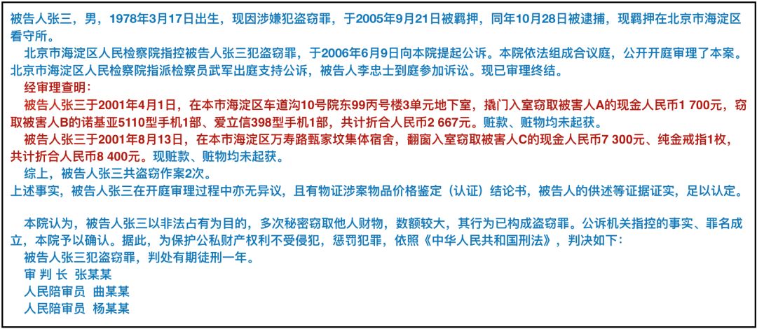 上例中,蓝色部分表示模型使用了句级、段级的预测,红色部分表示模型使用了字级的预测。可以看出,在信息意义不大的部分,模型选择了略读,而在关键信息出现的地方,模型采用了精读的方式处理。另外一个有意思的现象是,模型对于「经审理查明」等带有指示功能的语句一样采用了精读方式处理。