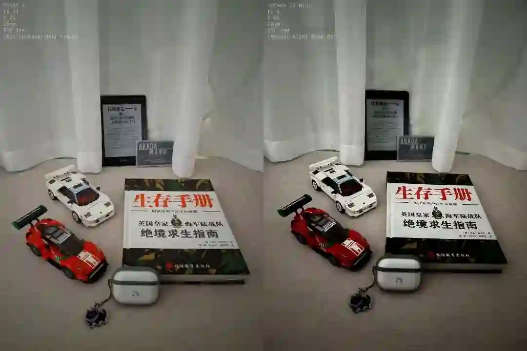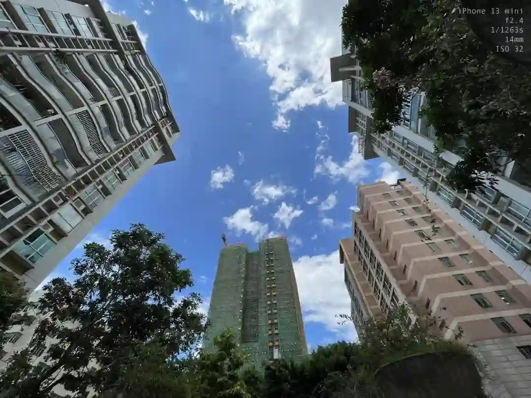 然而单论静态摄影而言,很不幸, iPhone 13 mini 仍然难以和早它一年的 Pixel 5 拉开差距。iPhone 13 与 13 mini 在发布会上让我很惊喜的一点是它们在摄像头的规格上没有做出太多的妥协,而是沿用了 12 Pro 系列那颗光圈 f1.6 的主摄像头,以及听上去很棒的「传感器位移防抖」。不过根据 Apple 在发布会上所说,传感器位移防抖的主要功能并非为视频拍摄提供增稳,而是为了允许更长时间的手持夜景拍摄:左为 Pixel 5 ,右为 iPhone 13 mini ,均为手持触发自动夜景(未使用摄影风格)对于这样的结果,比较高情商的结论可能是「两年前的 Pixel 5 实在是太强了」,而非「 iPhone 13 mini 简直毫无进步」——尽管 13 mini 在画面的纯净度上更胜一筹,但是在宽容度和细节还原方面仍然有非常明显的差距。而一旦当环境照度进一步降低到允许 Pixel 启动天文模式( Astrophotography )之后,就彻底没有 iPhone 什么事了:左为 Pixel 5 开启天文模式 1 分 44 秒,右为 iPhone 13 mini 手动夜景模式 8 秒(未使用摄影风格)但是和 Pixel 比拼极限夜景,恐怕任何品牌的机器都很难有好果子吃。因此当回到日常的拍摄中, iPhone 13 mini 的表现仍然是及格的,尤其相比 Pixel 5 上面那个 107 度的所谓「超广角」镜头, 13 mini 得以在将边缘畸变控制在合理范围内的同时真正实现一片非常广的视野。但是这些时候,智能 HDR 4 有些放肆的锐化策略也会在超广角照片中更加明显的体现出来,间或导致画面边缘的物体上出现一圈高光勾边。所以...尽量让超广角避开比较极端的亮暗差?左下角的树叶边缘可见很明显的 HDR 过度导致的亮边因此 iPhone 对于我来说仍然是一台日光机,唯有在光照充足的情况下 iPhone 13 mini 的超广角镜头可以实现超过 Pixel 5 的效果。但是假如以后还有机会见到另一代 mini 机型的话,我会希望可以用超广角来交换一枚长焦——原因很简单:超广角镜头尽管颇具画面张力,可用的场景却很单调,在拍摄景色之外就只剩下微距一种选择了,而这种选择在 13 mini 上还做不到;反之,长焦相机在拍摄人像之外可以实现更多灵活的空间压缩效果,创作欲望更高。这种时候如果有长焦的话就可以避免将一些杂物容纳进画面