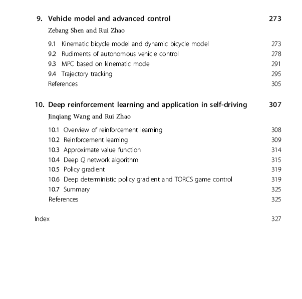 自动驾驶汽车是一个快速增长的研究和专业领域。《自动驾驶汽车的理论与实践》从感知、规划和控制三个领域全面介绍了自动驾驶汽车的技术。从原理到实践,系统地介绍了车辆系统,包括ROS编程、机器和深度学习的基础知识,以及环境感知和传感器融合等基本模块。书介绍先进的控制算法以及新研究的重要领域。这个头衔为工程师、技术人员和学生提供了一个可访问的手册,以了解自动驾驶汽车的整个技术堆栈。《自动驾驶汽车的理论与实践》从原理到实践对自动驾驶汽车技术进行了介绍。十章涵盖了自动驾驶汽车的全部无人驾驶技术。由两个在工业和研究经验丰富的作者写,这本书提供了一个可访问的和系统的介绍自动驾驶汽车技术。