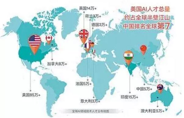 据领英近日发布的《全球AI领域人才报告》显示,截至2017年一季度,基于领英平台的全球AI领域技术人才数量超过190万,其中美国相关人才总数超过85万,高居榜首,而中国的相关人才总数也超过5万人,位居全球第七。显然,中国人工智能人才数量远不能满足市场需求,工信部教育考试中心副主任周明也曾在2016年向媒体透露,中国人工智能人才缺口超过500万人!