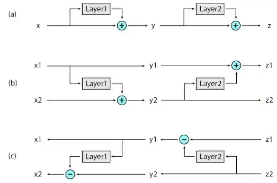 在 Reformer 中实现的第二个新方法是在反向传播期间按需重新计算每个层的输入,而不是将其存储在内存中。这是通过使用可逆层来实现的,其中来自网络的最后一层的激活被用来恢复来自任何中间层的激活,这相当于反向运行网络。在一个典型的残差网络中,栈中的每一层都不断地增加通过网络的向量。相反,可逆层对每个层有两组激活。一个遵循刚才描述的标准过程,并从一个层逐步更新到下一个层,但是另一个只捕获对第一个层的更改。因此,要反向运行网络,只需减去应用于每个层的激活。