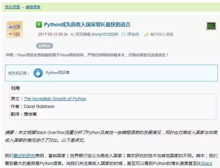 本文根据Stack Overflow流量分析了Python及其他一些编程语言的发展情况,同时也对高收入国家与非高收入国家的情况进行了对比。以下是译文。