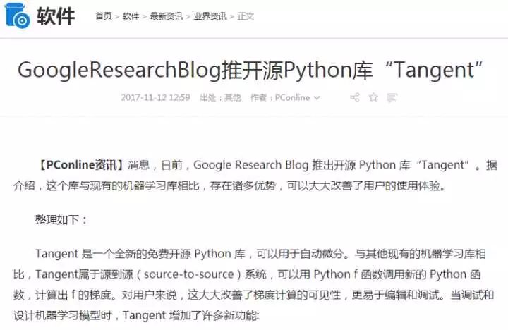 9.Google Research Blog 推出开源 Python 库“Tangent”
