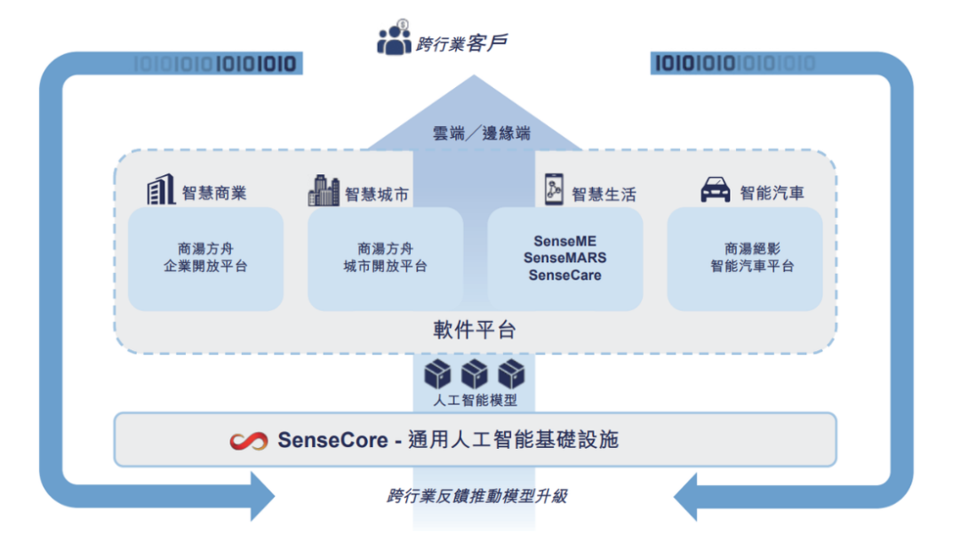商汤通过软件平台快速部署及商业化人工智能模型的流程。