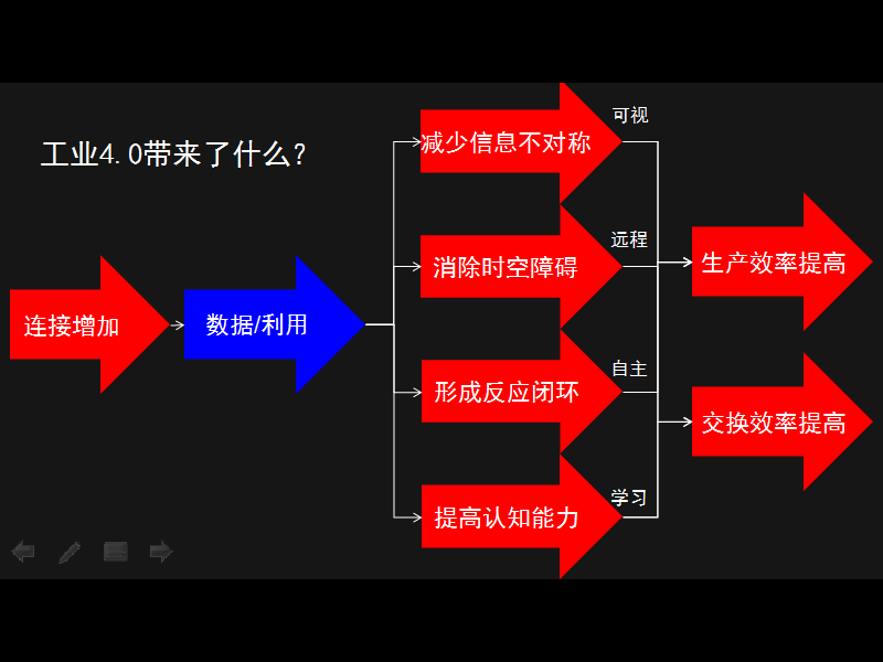 首先,工业4.0的核心就是连接。工业社会的进步史,就是一步不断增加连接的历史。无论是生产环节还是交换环节,都是增加连接,减少信息不对称。