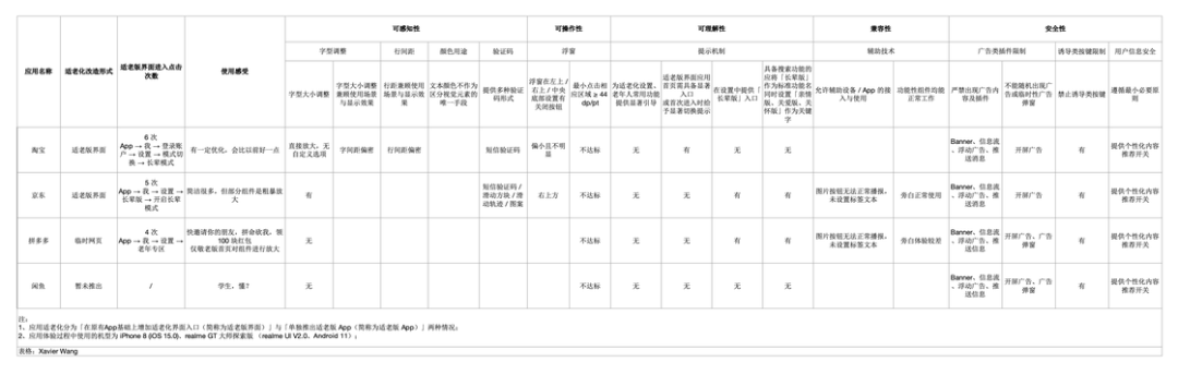 老年人随着年龄增大,其视力、听力、操作能力与灵活性、文字理解能力以及记忆力都会有一定程度的退化。工信部出台的 《移动互联网应用(APP)适老化通用设计规范》 从可感知性、可操作性、可理解性、兼容性、安全性等方面对 app 适老化改造提出要求。