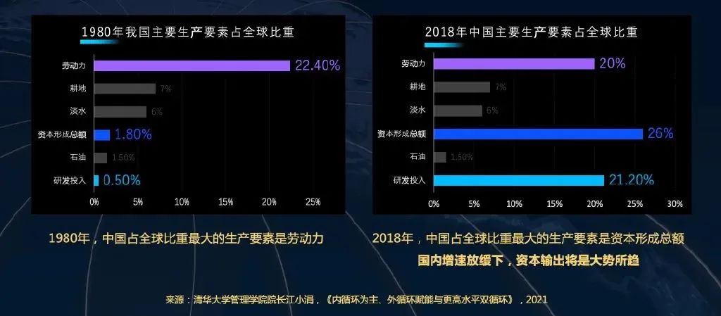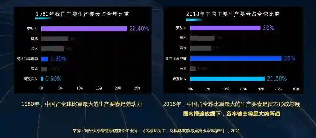 1980-2018年,我国的主要生产要素占全球比重的结构发生了巨大变化。1980年,劳动力占比远超其他要素。所以以劳动密集型产业作为改开切入点,不仅是必然的,也是唯一的选择。