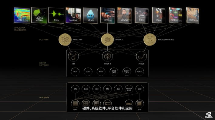 大会上英伟达发布了 Hopper 架构 GPU,并更新在 AI 硬件、软件平台、软件应用等领域最新产品进展和动态。