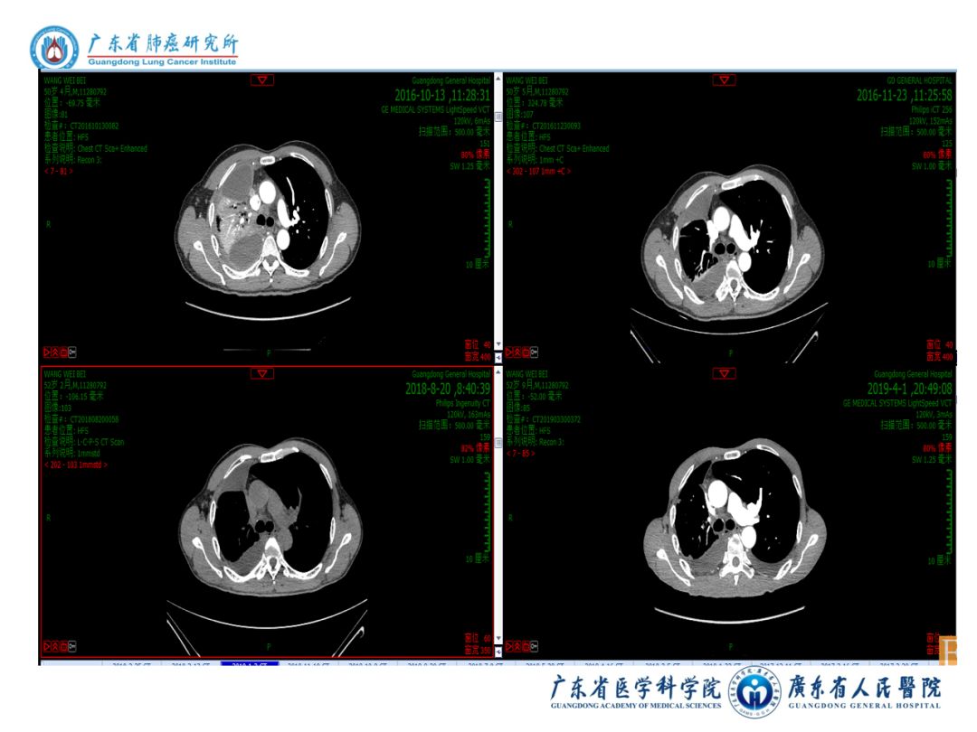 1)男性,52岁,既往有“高血压,Graves'病”病史。无吸烟史,无肿瘤家族史,PS =1分。