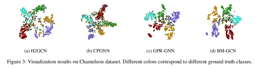 节点可视化实验 本文在chameleon数据集上进行了节点可视化实验,结果如下