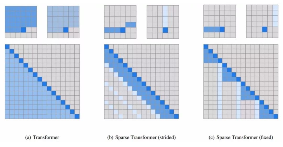 稀疏Transformer将先前Transformer的平方复杂度O(N^2)降低为O(NN^1/2),通过一些额外的改进使得自注意力机制可以直接用于长程的语音、文本和图像数据。